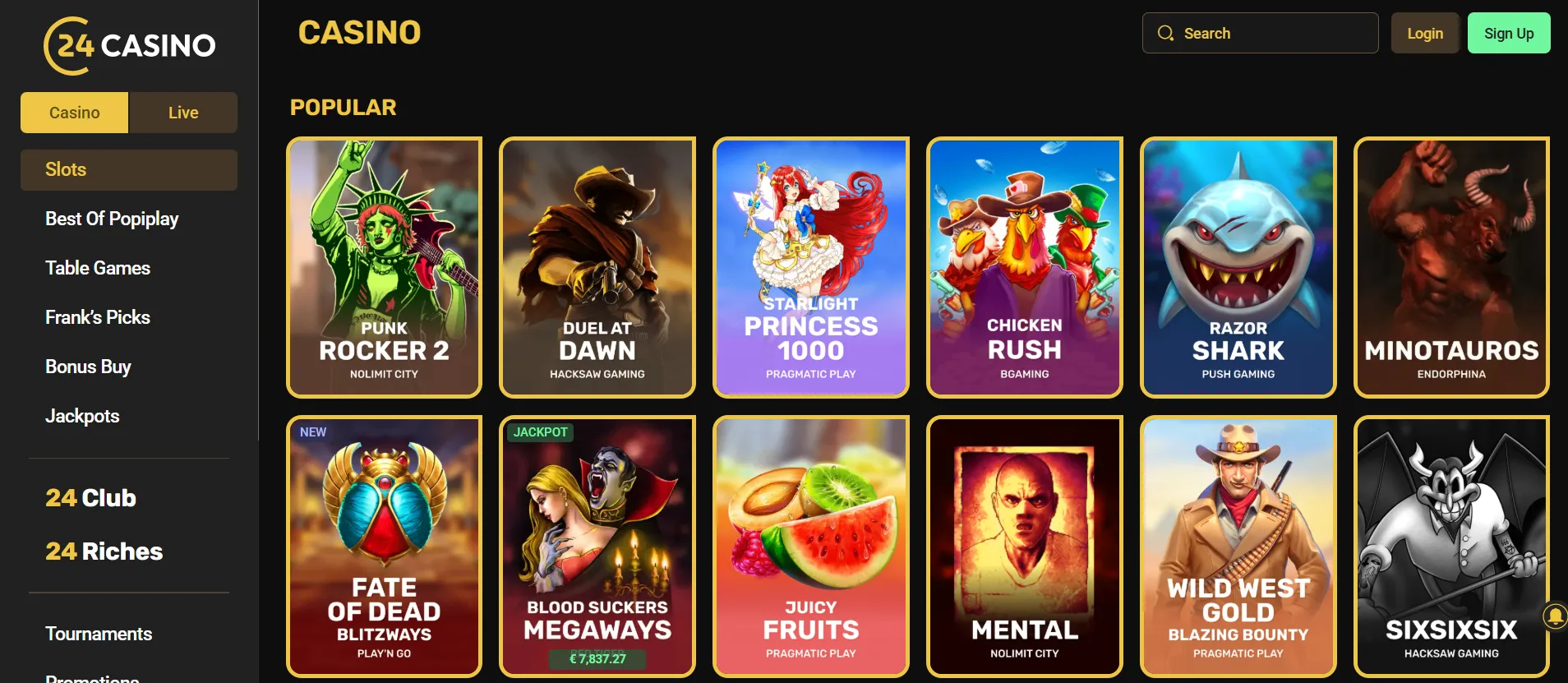Populaarsed mängud ja online slotimängud 24casino kasiinos